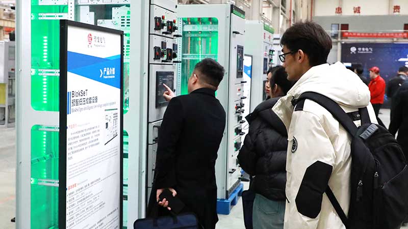 随后,生产车间展厅内,一系列极具科技感的智能配电设备吸引了众多嘉宾驻足观看,工作人员详细介绍了公司在智能配电系统领域的前沿探索与技术突破。嘉宾们零距离观摩新产品的制造过程,深入了解高精度自动化生产线及智能化工艺控制系统。sunbet申搏凭借卓越的制造工艺、严苛的质量管控、智能化的生产流程,为电力行业提供高效、可靠、安全的智能配电设备,展现出雄厚的技术实力和行业影响力。